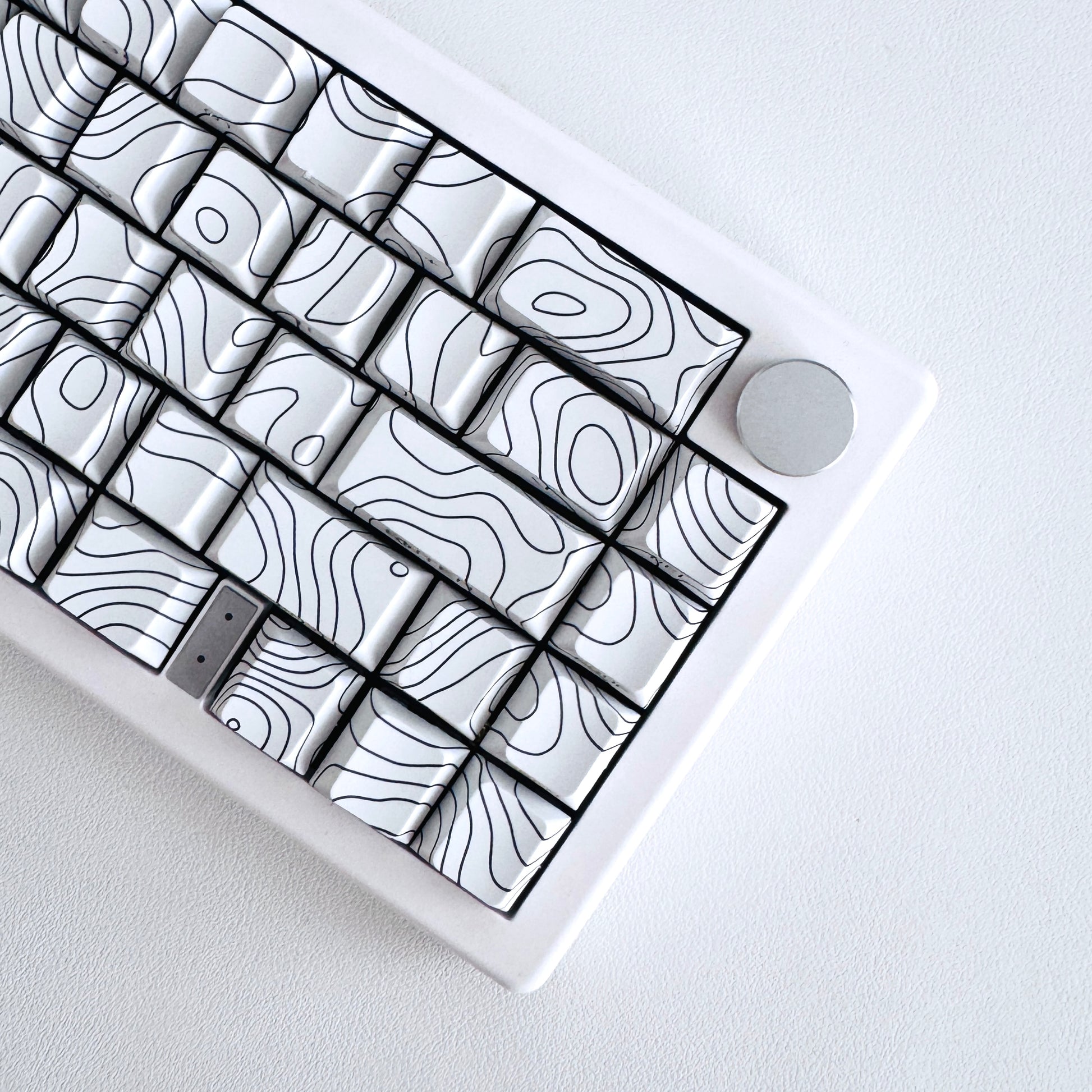 Every great journey begins with a map. The Atlas arrives with topographic contour lines flowing across each keycap