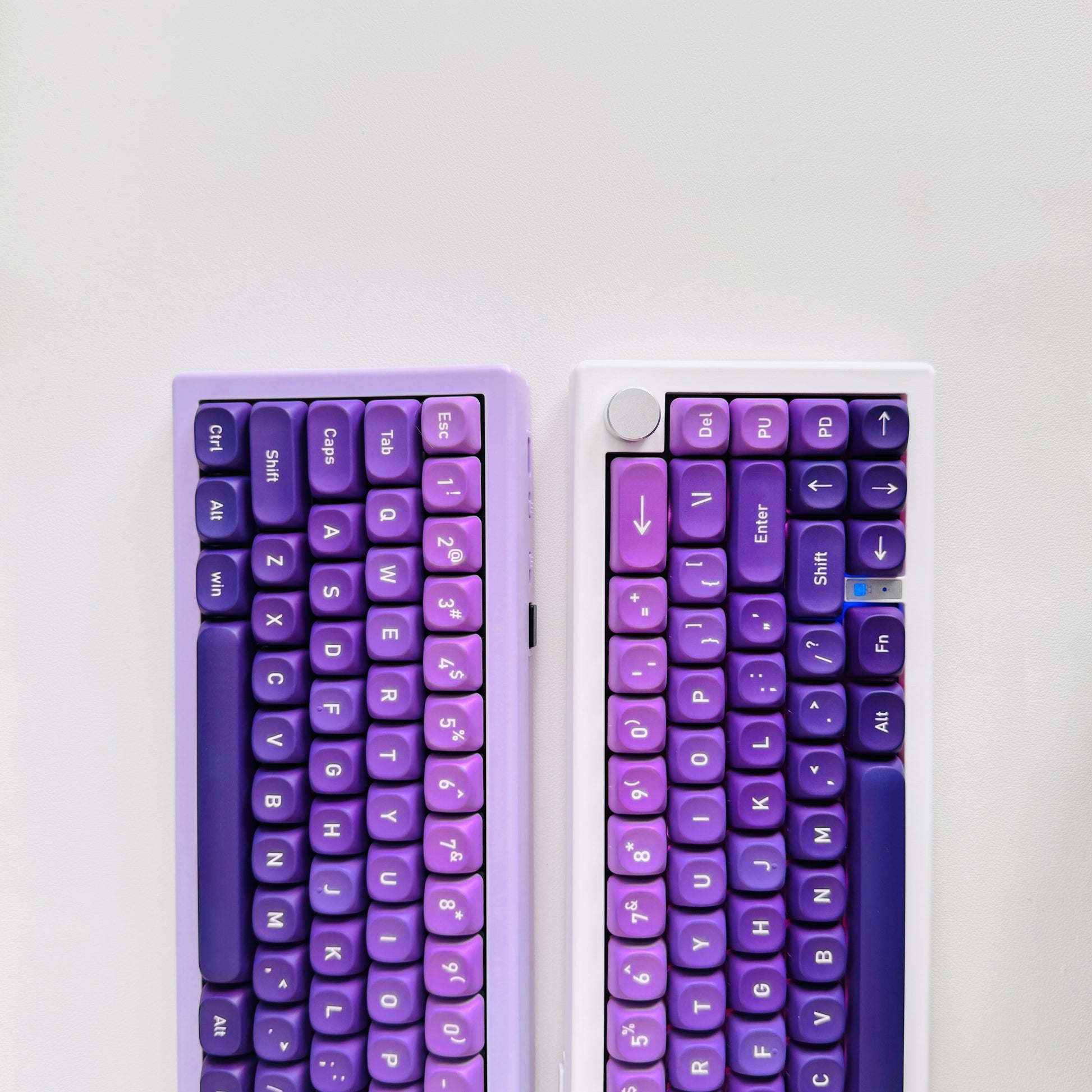 - キーボード全体に深いウルトラバイオレットからソフトなラベンダーへと流れるパープルグラデーション PBT素材